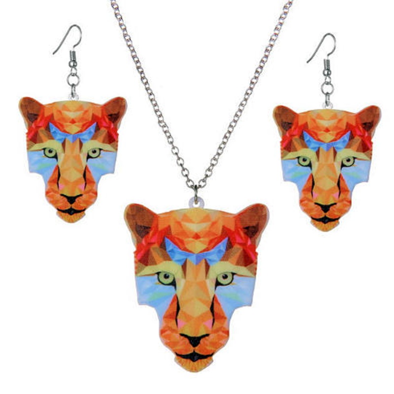 Artistic Big Cat Face Necklace and Earring Set – Acrylic