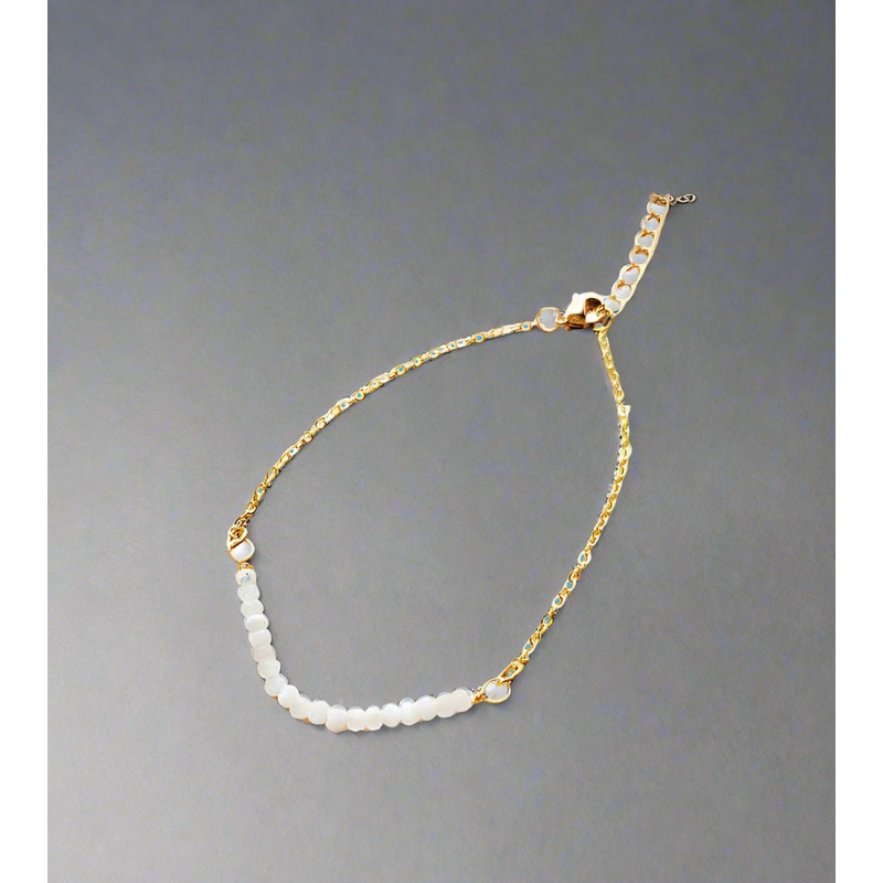 This delicate golden bracelet features authentic faceted moonstone beads.
