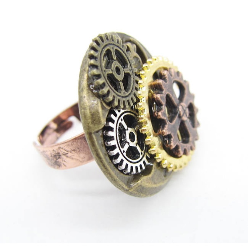 Ring with Multiple Gears - Steampunk StyleMetal Type:Zinc AlloyLead & nickel freeSurface Width: 1" (approx)Size: Adjustable