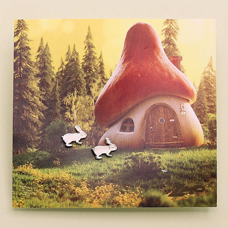 Take a whimsical adventure with these sweet White Rabbit enamel post earrings. No need to chase these rabbits, as they will stay securely on your ears.